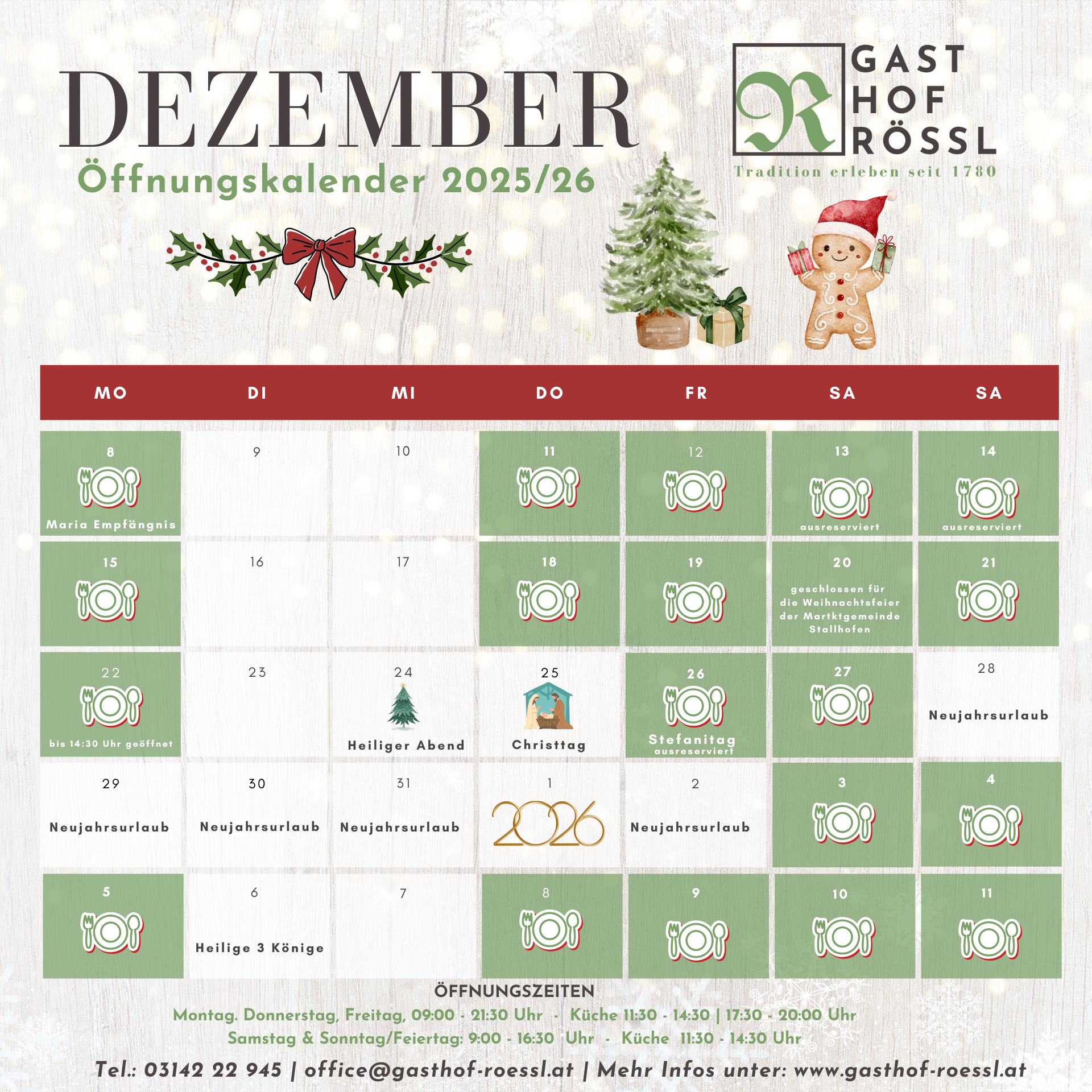 (Samstagabend auf Anfrage für Feiern und Veranstaltungen)